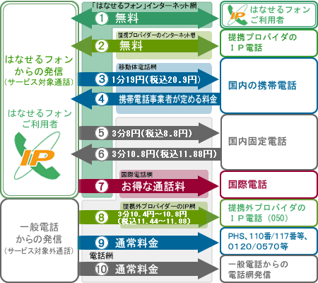 | 国内携帯電話への通話(IP to 移動電話網) |