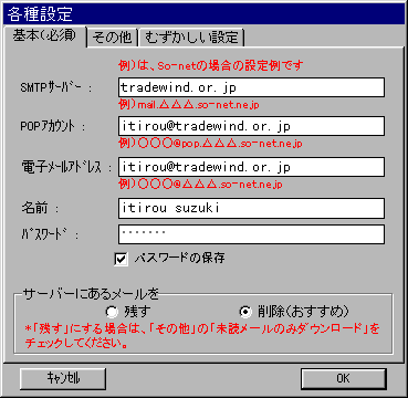 ・【POPアカウント】は itirou@tradewind.or.jp と入力します。itirou