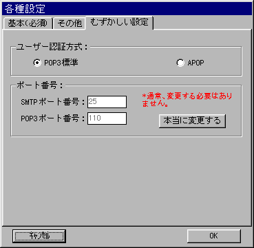・「ユーザー認証方法」は POP3標準が選択されていることを確認してください。